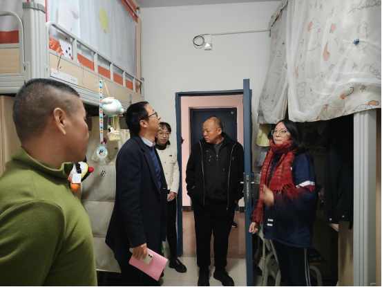 座谈会结束后,冒乃岘老师一行实地走访学生宿舍,深入学生中间关心慰问他们在学习、工作、生活中的状态,处理了宿舍存在的设施问题,同时对铜盘校区2号楼的社区建设工作提出了指导性意见,为将其建设成为学生党建前沿阵地、“三全育人”实践园地、智慧服务创新基地、平安校园样板高地指明了方向。