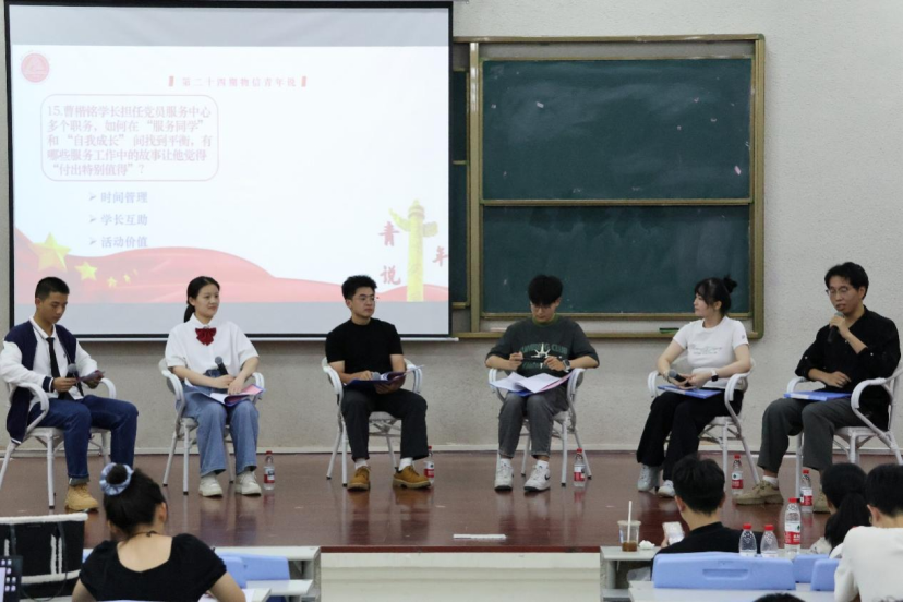 党委主办、学生发展中心承办的《物信青年说》第二十四期——“学海逐光书锦卷,薪火承炬启新篇”在铜盘校区科报厅A举行。物信学院党委郑志刚副书记、各年级辅导员老师出席本期青年说,物信学院线下两百多名学生参与其中。