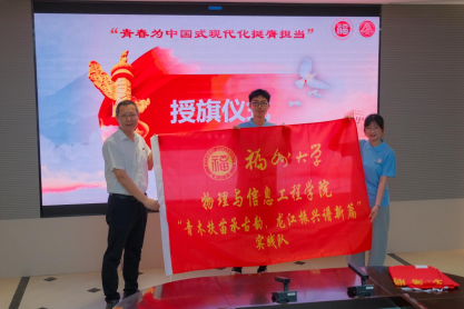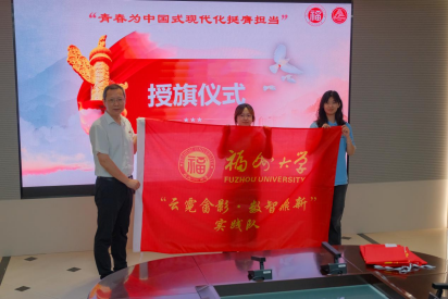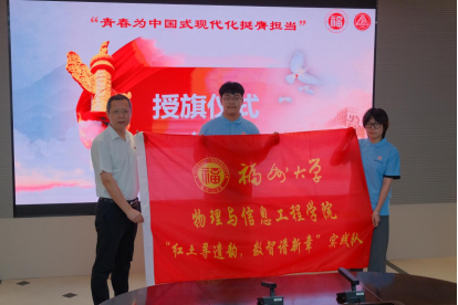 接着,郑志刚副书记为各实践队伍授旗,并与各队队长合影留念。
