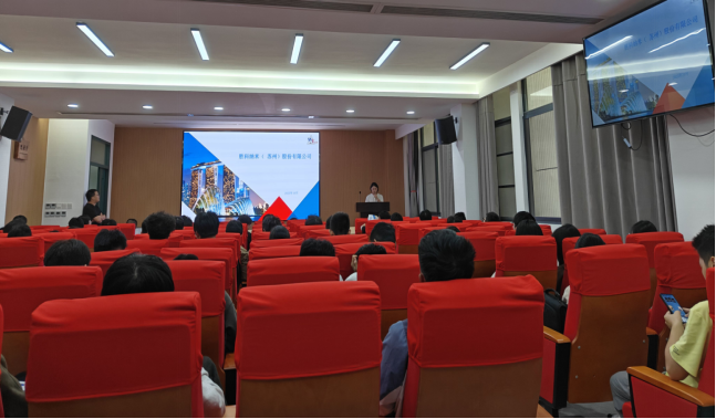 活动伊始,园区代表对福建(晋江)集成电路产业园区的整体规划、发展现状及未来前景进行了详细介绍,为同学们描绘了清晰的产业蓝图。随后,园区多家重点企业负责人依次上台,就企业概况、技术优势、人才需求及招聘岗位进行了具体说明,让同学们对集成电路产业的就业市场有了更直观、更深入的了解。