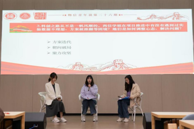党委主办、学生发展中心承办的《物信青年说》第二十六期在铜盘校区科报厅B举行。物信学院2025级全体本科生通过线上和线下相结合的形式参与本次分享会。
