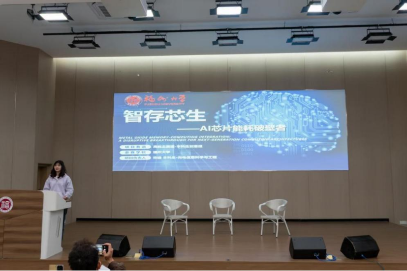 在上半场“创新之星”分享会中,二位创新大赛获奖者首先介绍了创新大赛的相关情况,以及竞赛中所遇到的困难,并耐心地为同学们分享解决问题的经验。其中,宋婕同学分享了其主导的“智存芯生——AI芯片能耗破壁者”项目,并深入探讨了作为项目负责人的团队协作与时间管理心得;吴小芳同学则解读了其参与的“芯动无界——高可靠心内通信芯片”项目,揭示了如何突破技术壁垒,将前沿研究应用于健康医疗的创新路径。
