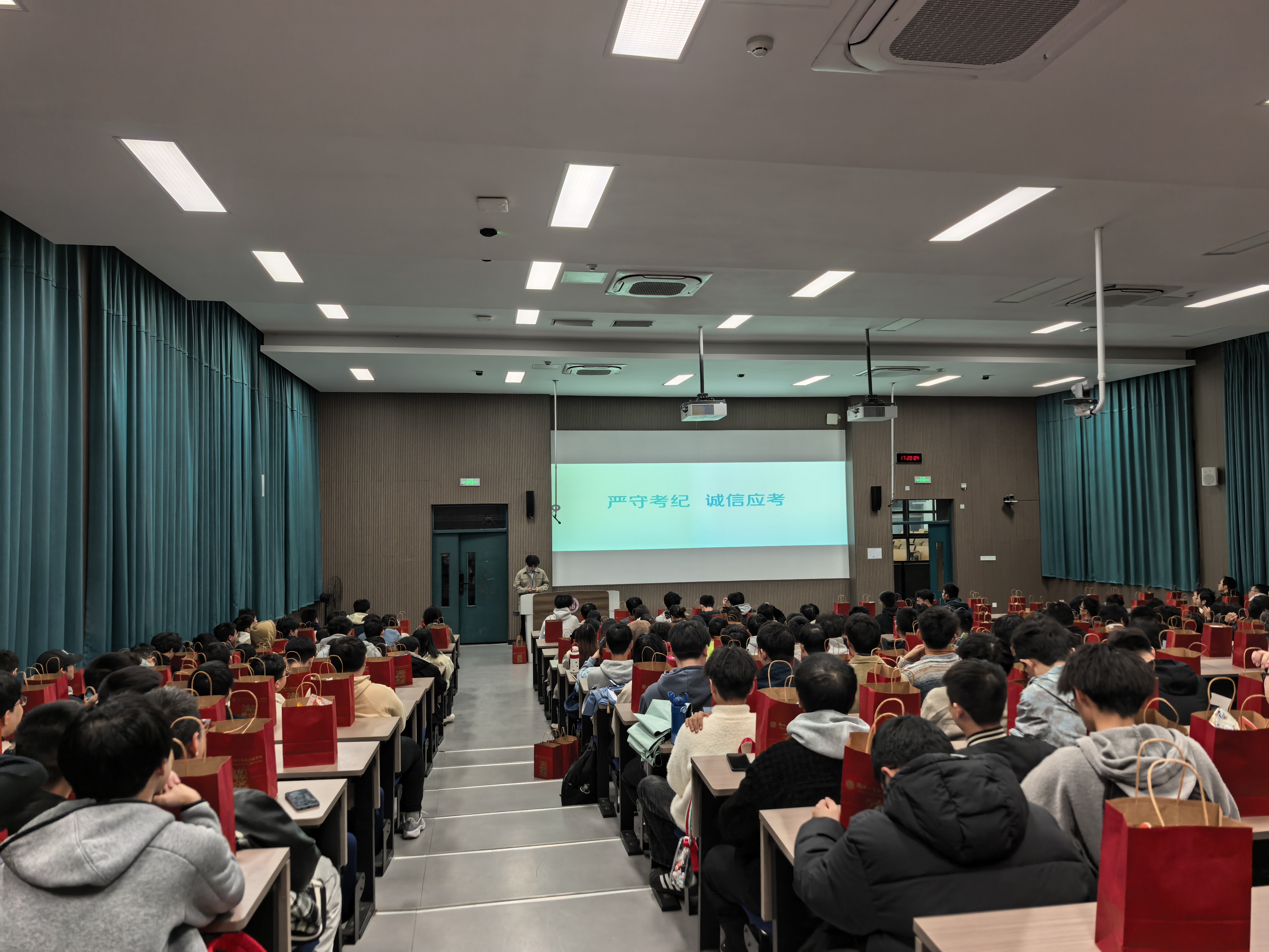 大会伊始,毕业班辅导员叶昊老师带领全体考生集中观看《国家教育考试考生诚信教育宣传片》。宣传片通过真实舞弊案例剖析、违规后果警示等内容,直观展现了研究生入学考试的严肃性与权威性。随后辅导员叶昊老师结合考场规则细则,着重强调“诚信应考是底线,真实水平是底气”,要求学子们摒弃侥幸心理,坚决抵制替考、舞弊等违规行为,严格遵守考场纪律,以诚信品格书写青春答卷,共同守护“零作弊、零违纪”的阳光考场秩序。