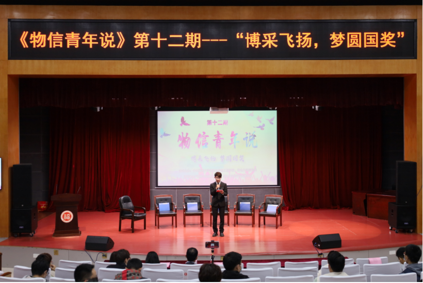 党委主办、学生发展中心承办的《物信青年说》第十二期之“博采飞扬,梦圆国奖”论坛讲座在图书馆明德厅开讲。