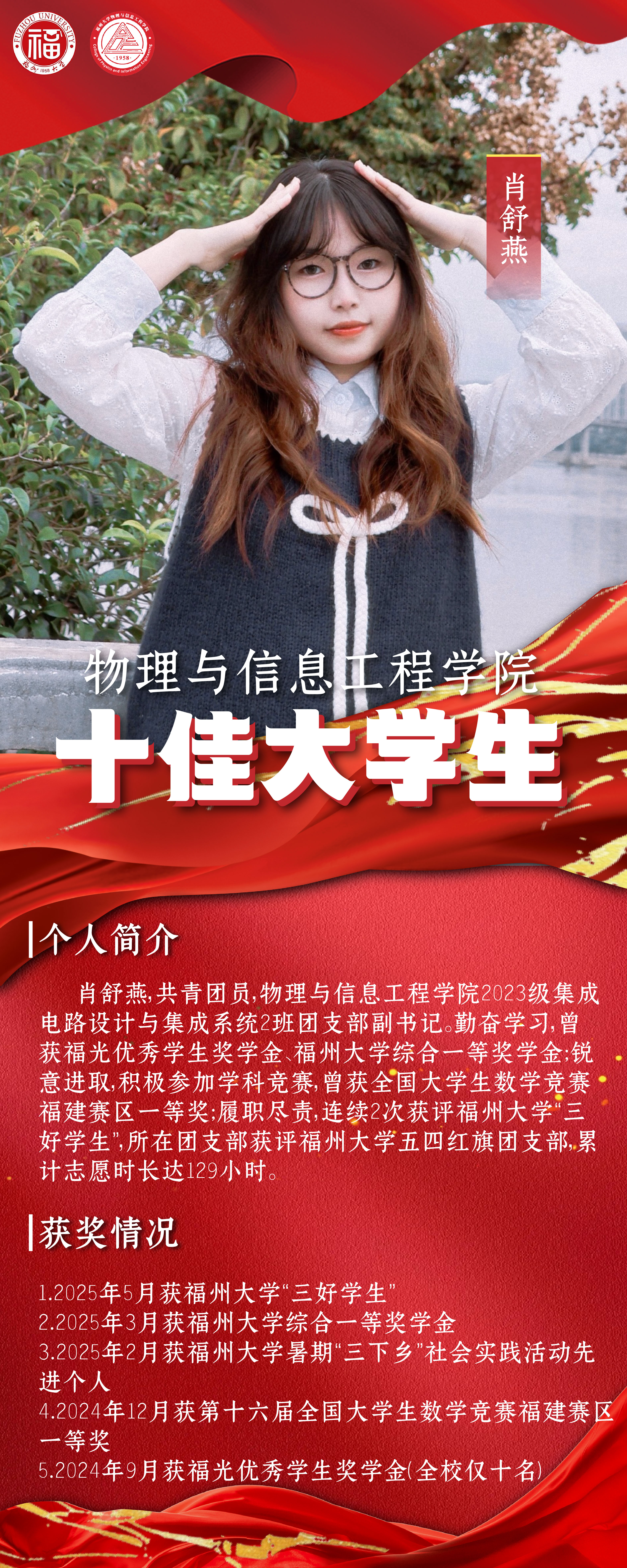 青春榜样|物信学院十佳大学生:肖舒燕