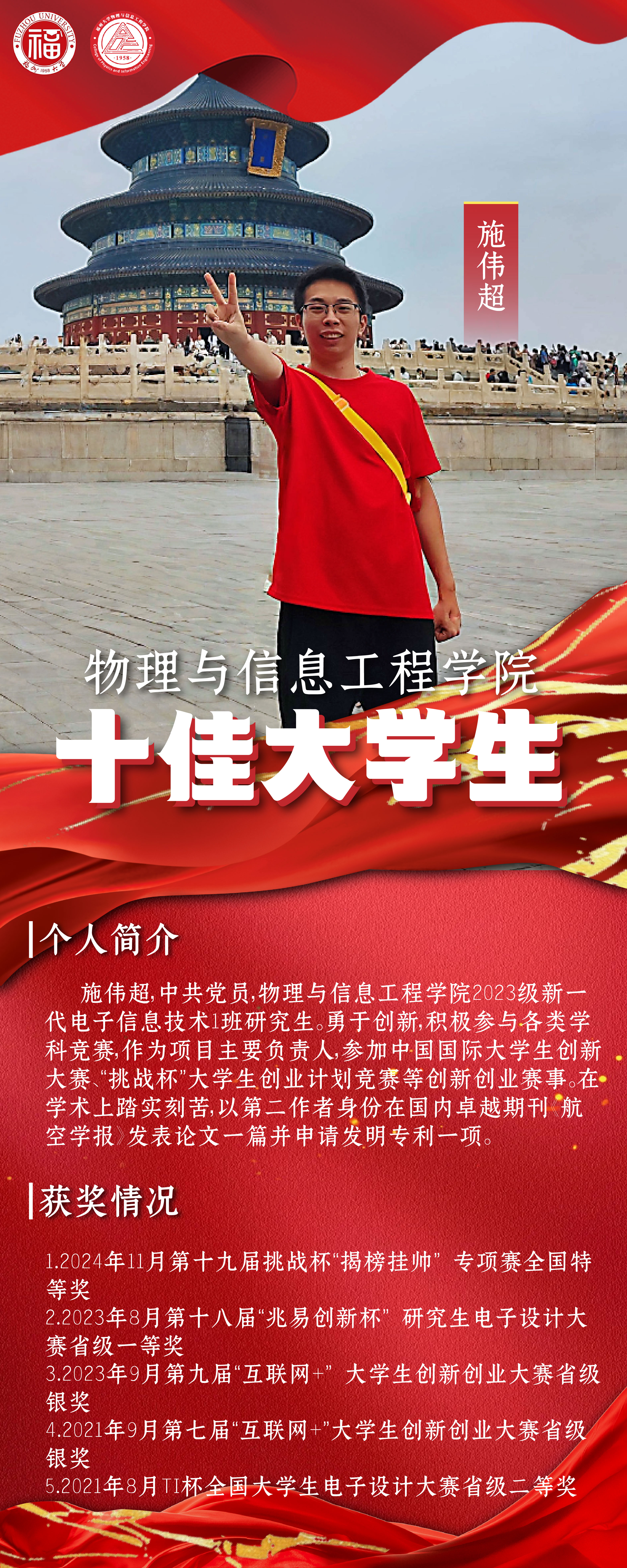 青春榜样|物信学院十佳大学生:施伟超