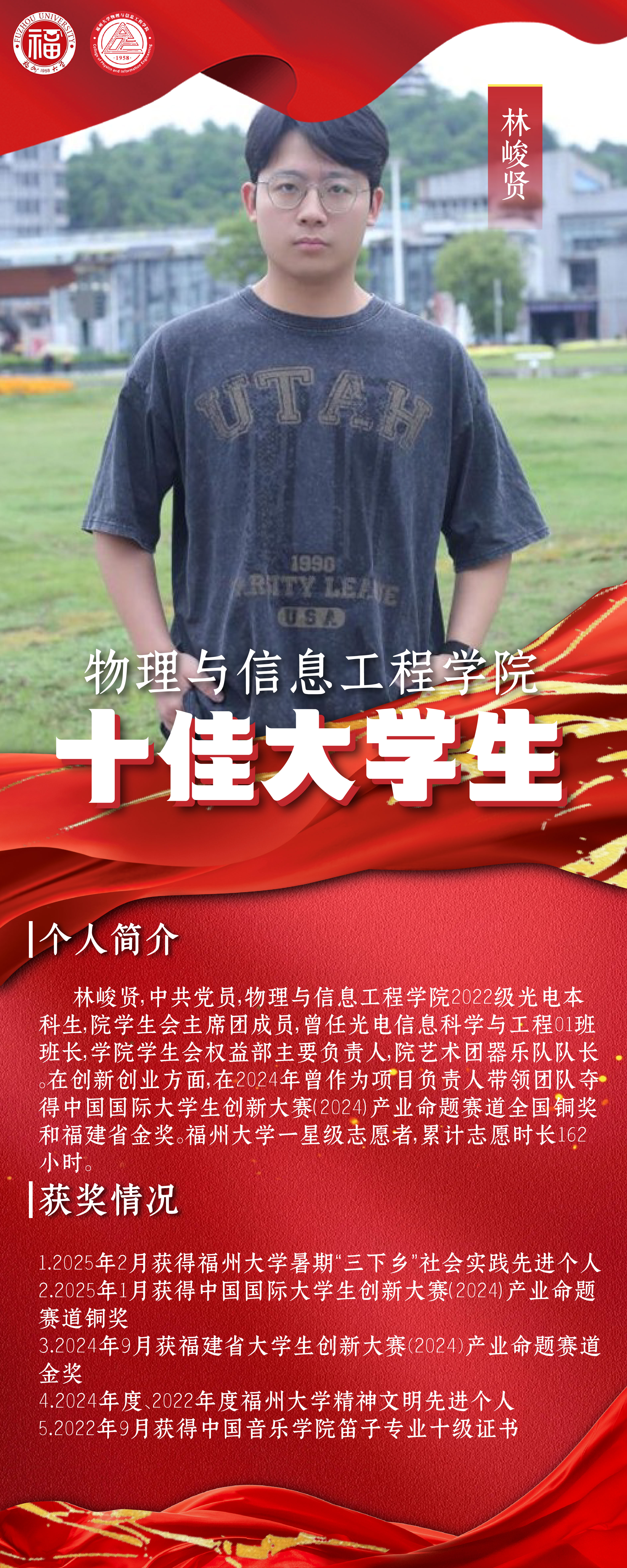 青春榜样|物信学院十佳大学生:林峻贤