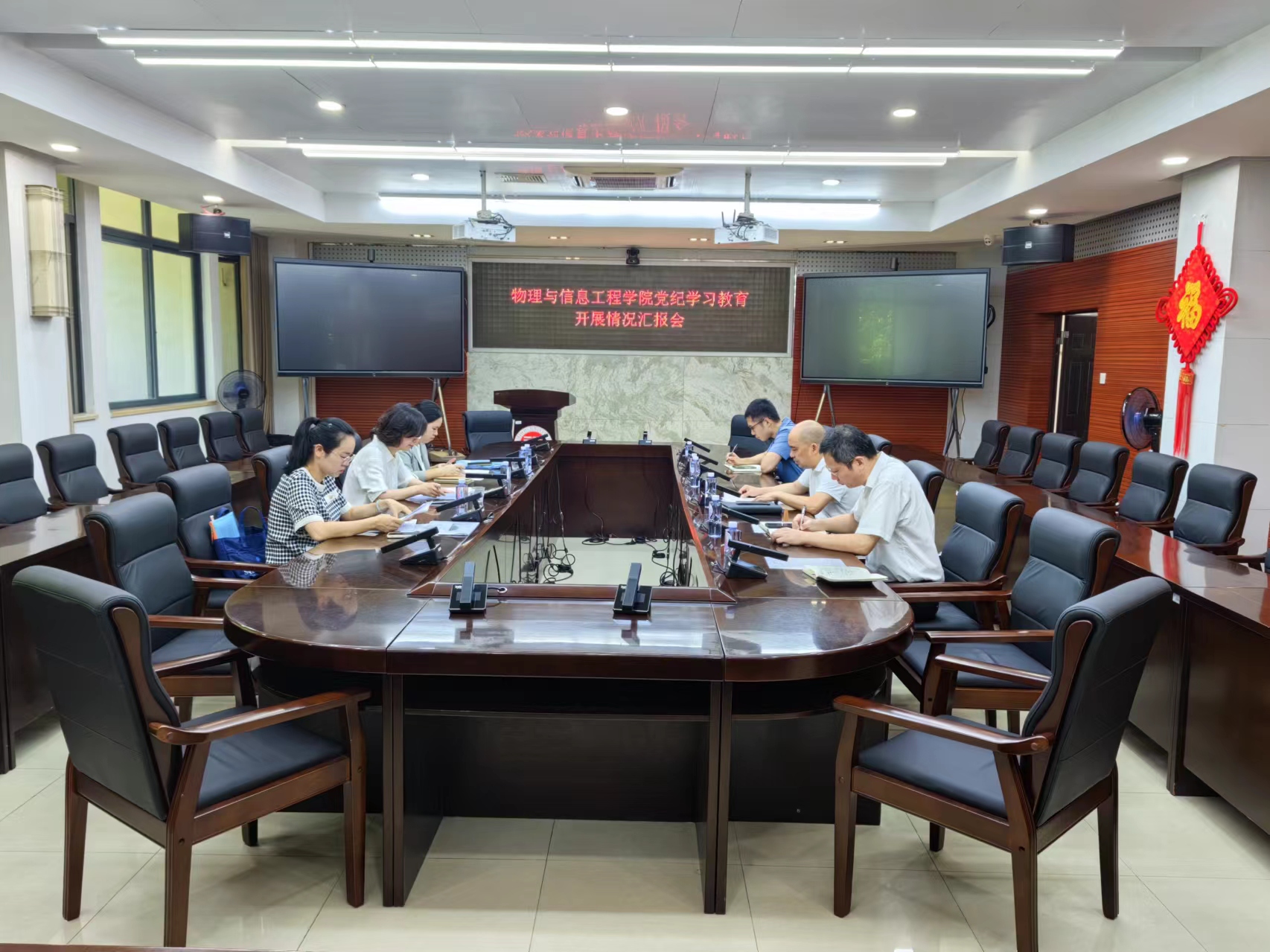 党纪学习教育第二督查组组长黄滨和组员刘闻滔、林梅玉一行3人到物信学院检查指导党纪学习教育工作。