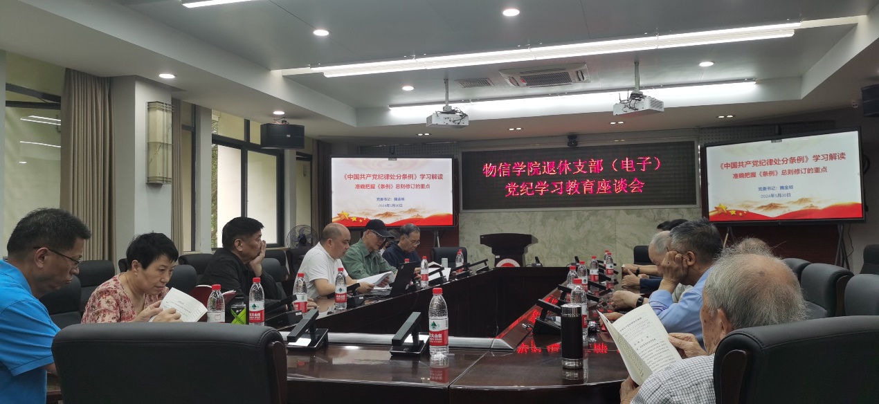 5月30日上午,物信学院电子退休党支部开展“离岗不离党,退休不褪色---学纪、知纪、明纪、守纪”为主题的党日活动。