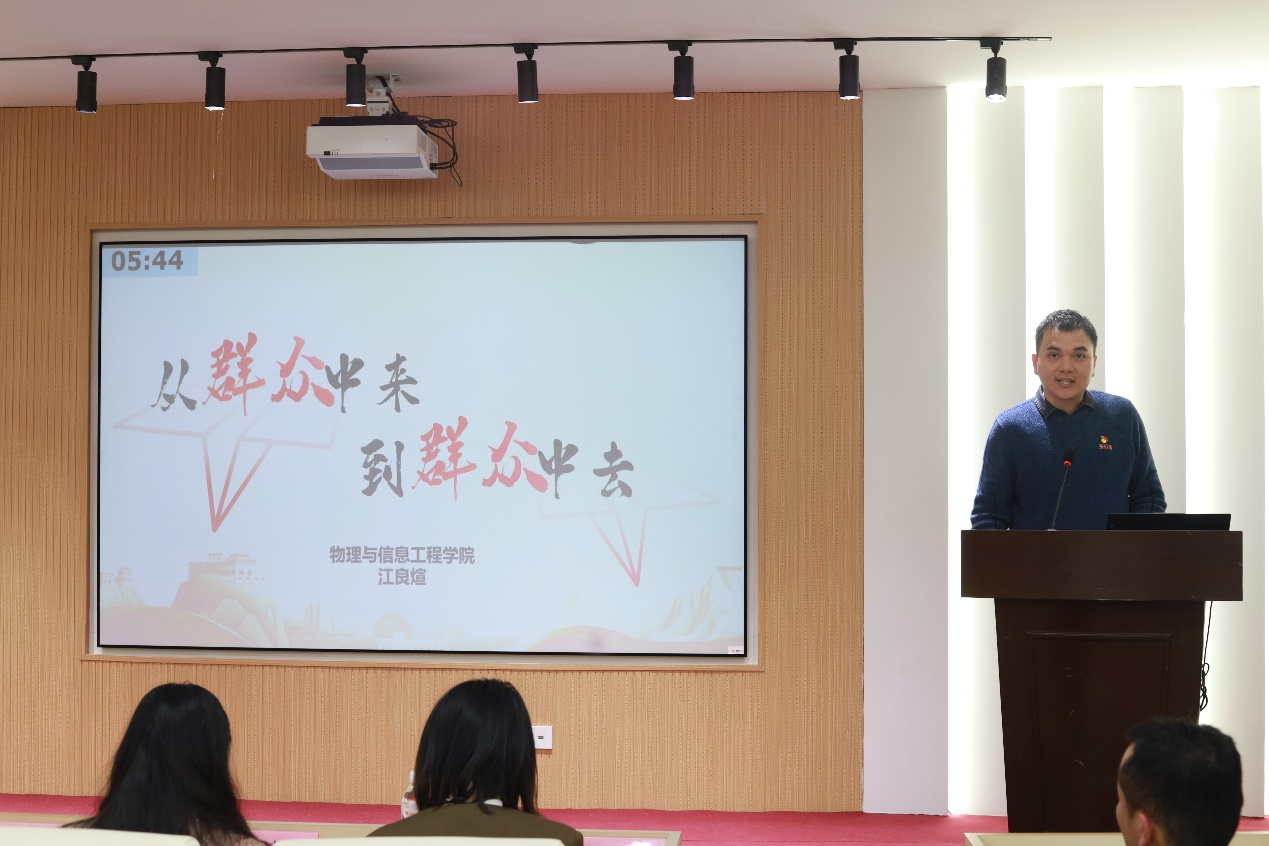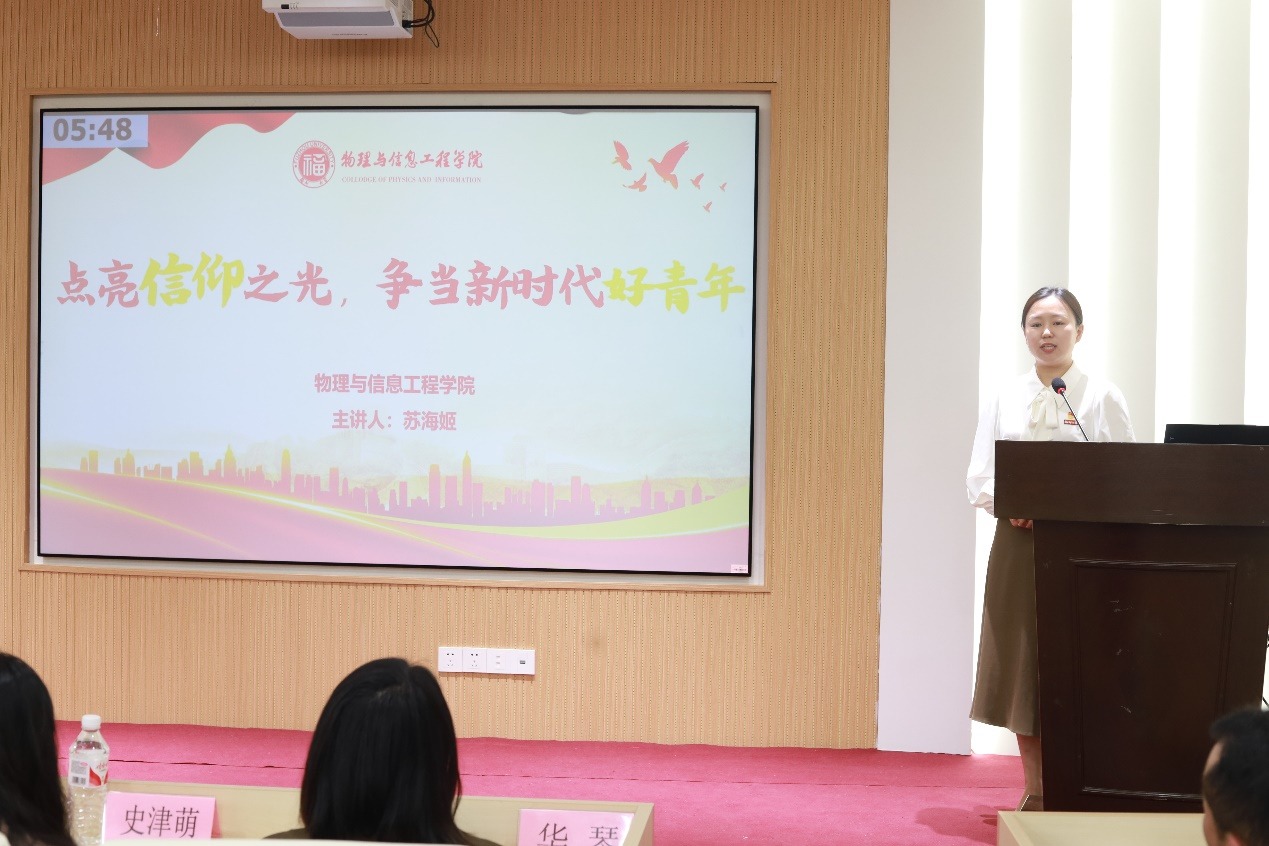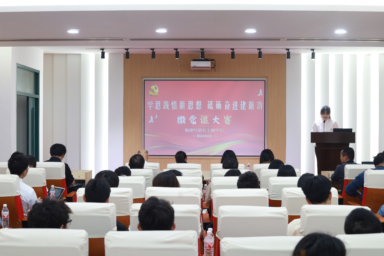 为推动全院师生党支部和广大党员持续深入学习贯彻习近平新时代中国特色社会主义思想,引导师生党员坚持用党的创新理论武装头脑、指导实践、推动工作,4月11日下午,物信学院在思源厅举办“学思践悟新思想,砥砺奋进建新功”微党课大赛。本次比赛邀请校党委组织部赵艳莉老师、校团委史津萌老师、环境与安全工程学院李响老师、化学学院华琴老师作为评委。学院党委副书记郑志刚、组织员王明及全体师生党支部书记、辅导员、党员代表共计100余人到场观看比赛。