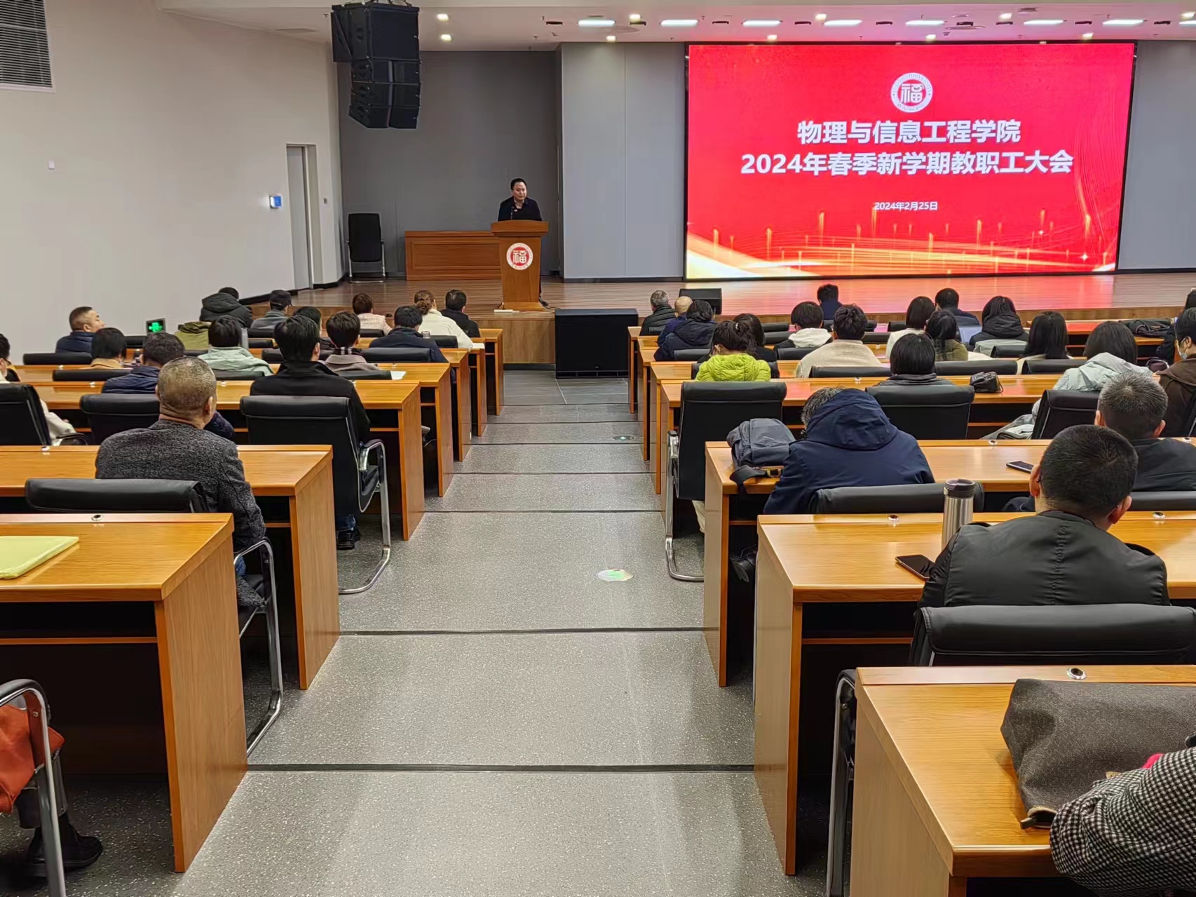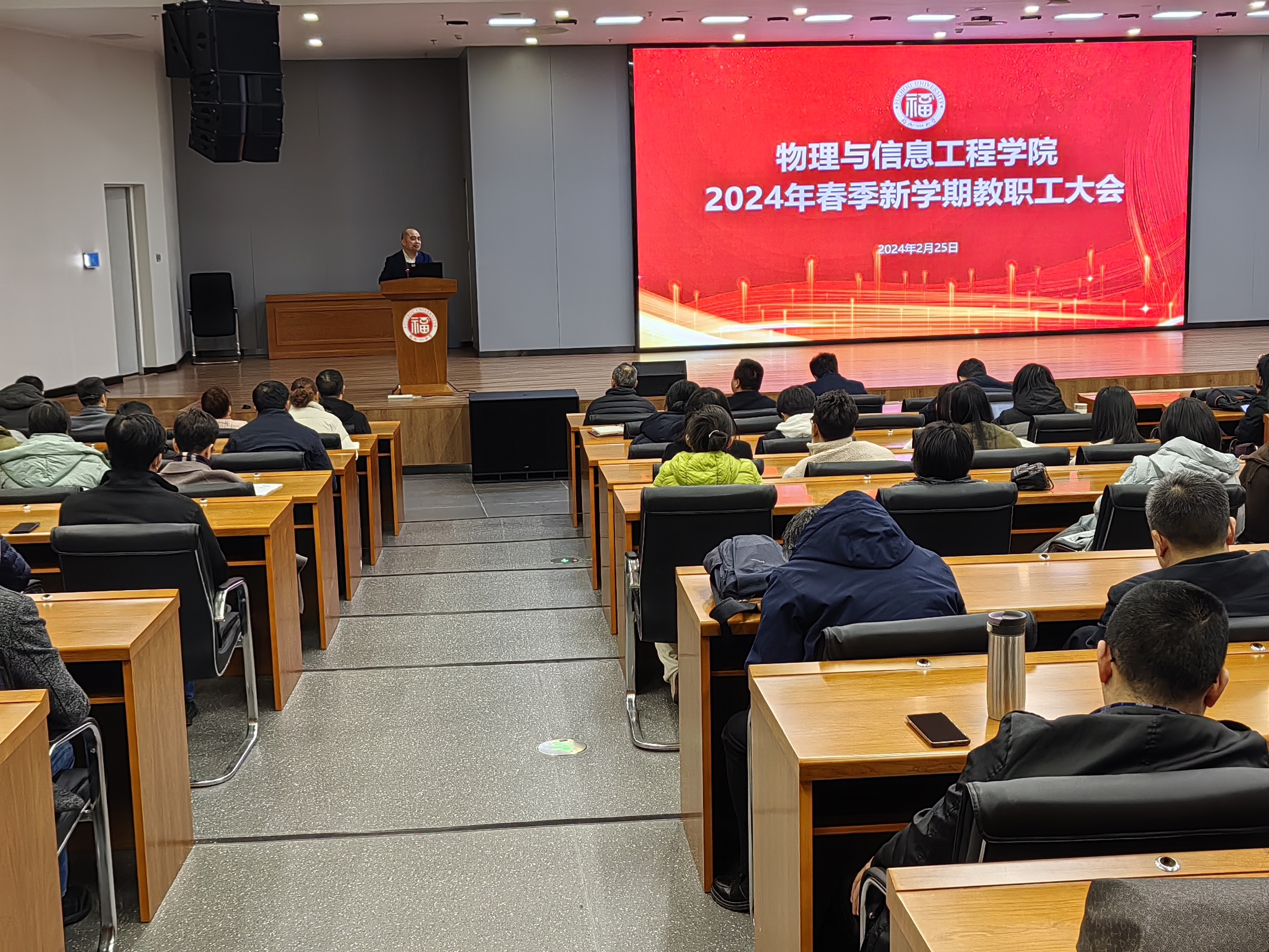 2月25日下午,物信学院在旗山校区晋江楼一楼报告厅召开2024年春季新学期教职工大会,全体教职工参加了会议。学院党委书记魏金明主持会议。
