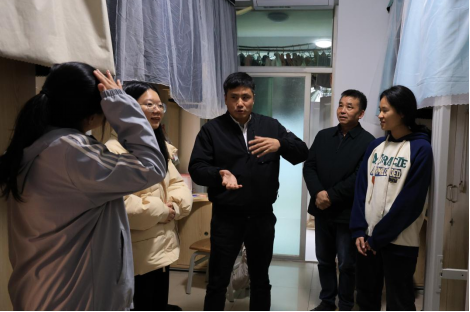 座谈会结束后,许春华部长一行实地走访学生宿舍,关心慰问学生,并对学生宿舍楼的安保设施和消防安全情况进行了检查。他提出,要强化安全意识、防范安全风险,加强安全隐患排查整改,尽快解决学生生活中存在的实际问题,确保校园和谐稳定。
