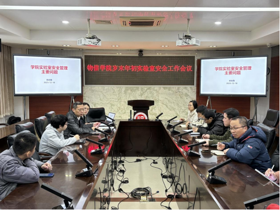 2023年12月18日上午,Av在线看在祥联厅召开岁末年初实验室安全工作会议。学院党委郑志刚副书记、院实验室安全管理员以及各实验中心、科研平台相关负责人员参加了会议。