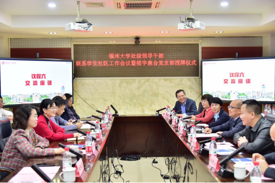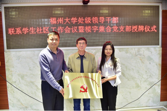 处级干部联系学生社区工作会议暨楼宇兼合党支部授牌仪式。校纪委(监察专员办公室)、保卫部(人民武装部)、基建管理处、后勤管理处、图书馆、机电工程实践中心、资产经营有限公司、体育教学研究部等相关部处领导,学院党政领导班子、全体政工干部、各楼宇兼合党支部支委以及学生代表出席会议,会议由院党委副书记郑志刚主持。