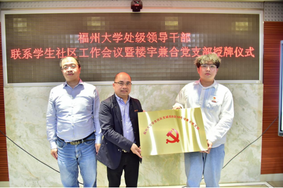 学院党委副书记郑志刚现场宣读了楼宇总指导员、楼层指导员、楼宇兼合党支部书记名单,并邀请楼宇总指导员、楼层指导员为楼宇兼合党支部授牌。学生代表邱晓苏同学与楼宇兼合党支部书记代表江良煊同志分别发言,介绍一站式社区工作经验与下一步工作开展计划。在交流座谈环节,各部处级领导纷纷表示将整合资源,发挥作用,主动服务,协同学院共同培育一流人才。最后院长卢孝强对各位处级领导的大力支持表示感谢,希望通过全员下沉,凝聚师生育人合力,共同构建富有物信特色的沉浸式社区育人体系。