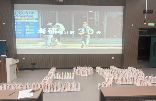 最后,党委副书记郑志刚老师作考研冲刺动员讲话。他鼓励考研的同学们要坚定初心,劳逸结合,在厚积薄发中成功上岸。同时学院为每位同学发放了考研慰问品,活动在全体备战考研同学铿锵有力的宣读考研冲刺誓词中声圆满结束。