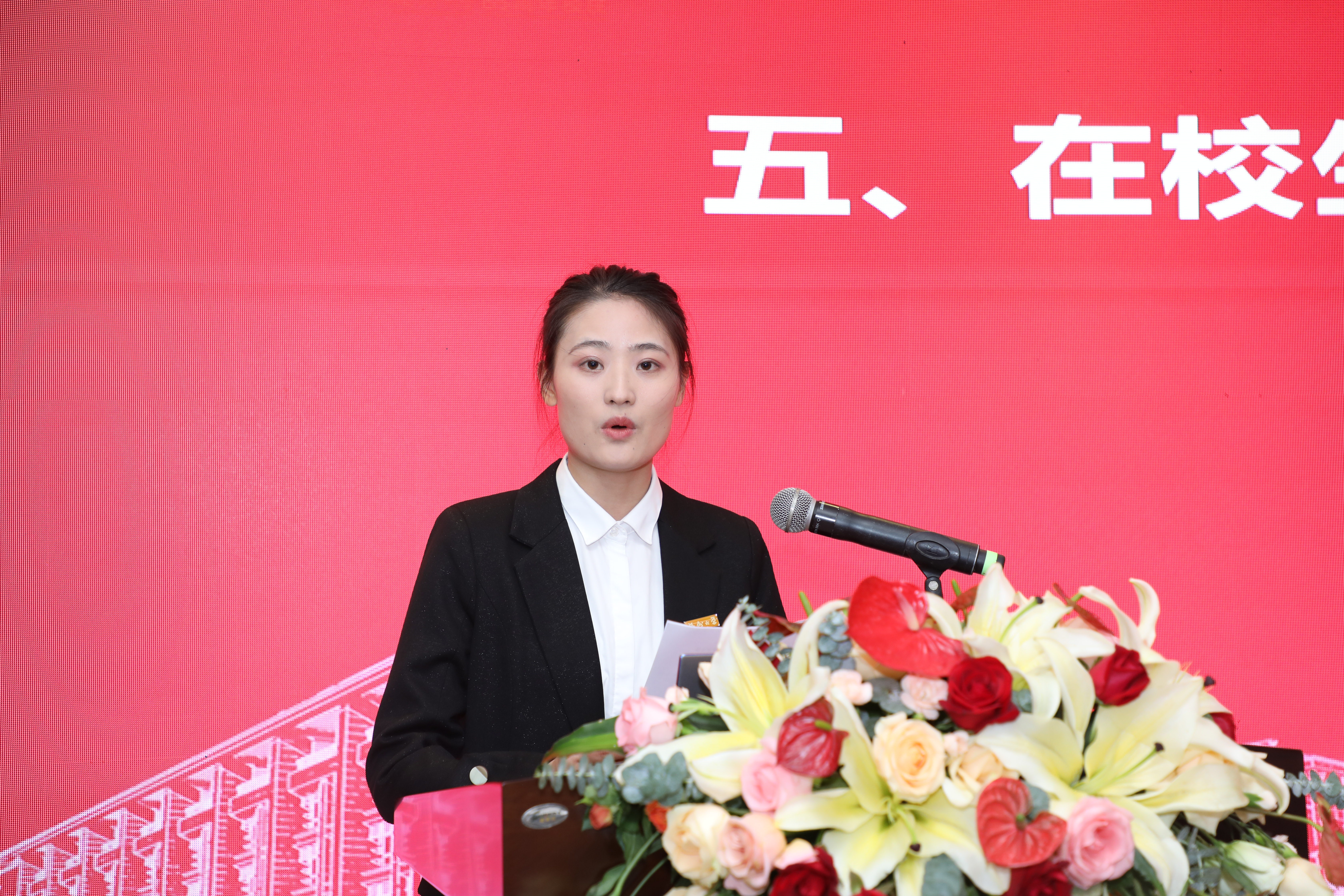 在发言环节,在校生代表、Av在线看 百名研究生党员标兵徐攀代表在校生对校友们为学院做出的贡献表示感谢,表示要向各位优秀校友学习,为学院发展贡献青春力量。