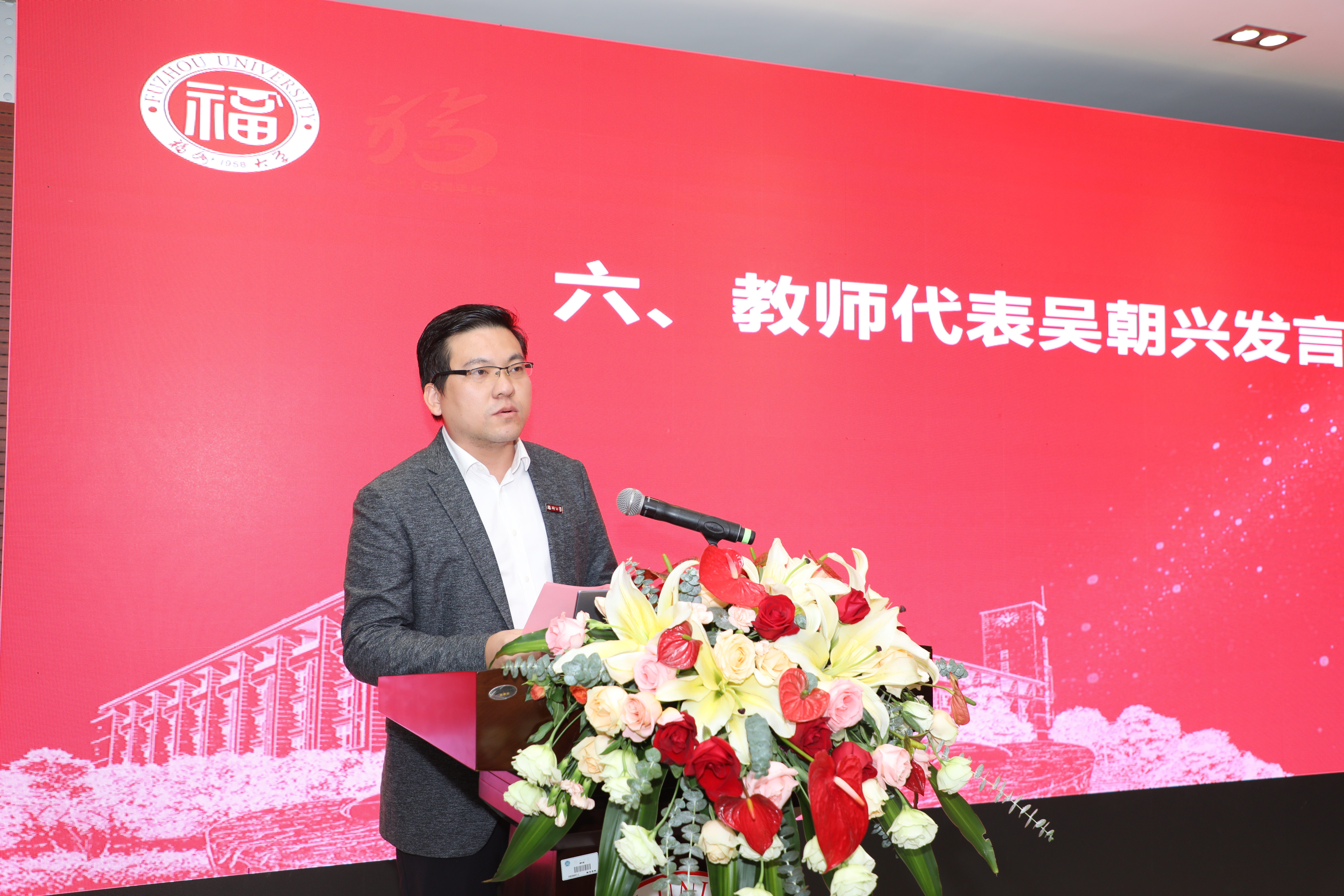 教师代表吴朝兴教授回顾了自己在学院求学成长的经历,感谢各位校友对学院发展的支持,他用“榕树精神”来比喻校友和学院的关系,表示作为教师将继续努力,培养更多优秀人才,为社会做出更大的贡献。