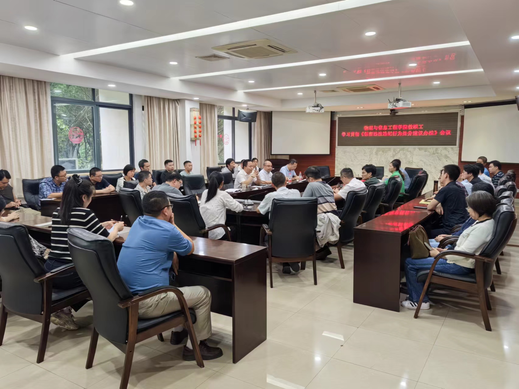 10月11日下午,物信学院在祥联厅举办《保密违法违纪行为处分建议办法》集中学习教育会议,全体教职工参加了会议。会议由学院党委书记魏金明主持。