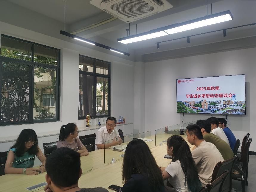 为落实学校关于学生思想动态调查工作要求,把握学生关注的热点问题和普遍诉求,Av在线看结合实际采用问卷调研、个人谈心谈话、走访宿舍等形式认真组织学生返乡思想动态调研工作。为增强思想政治工作的针对性、实效性和主动性,Av在线看于9月1日下午召开2023年秋季学生返乡思想动态调研座谈会,会议由辅导员刘媛老师主持,院党委副书记郑志刚老师与本、硕、博共计13名学生代表进行了深入交流。