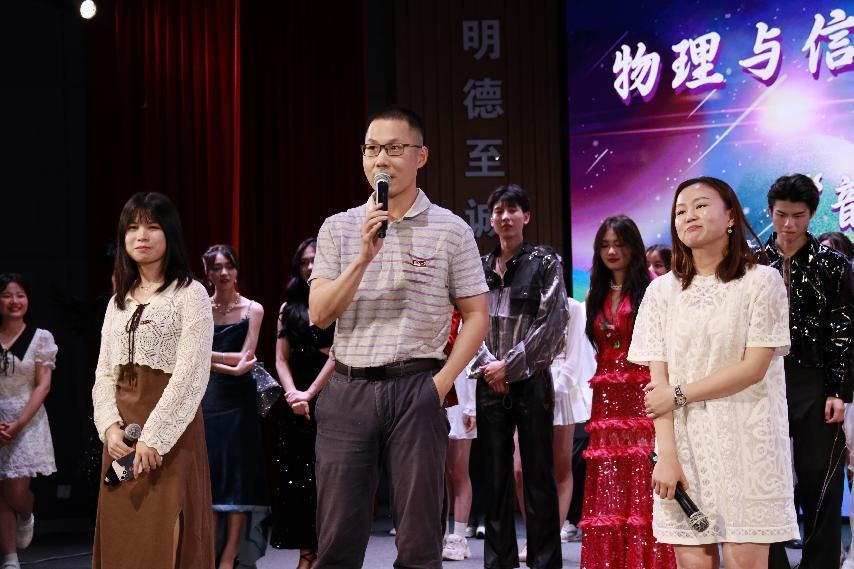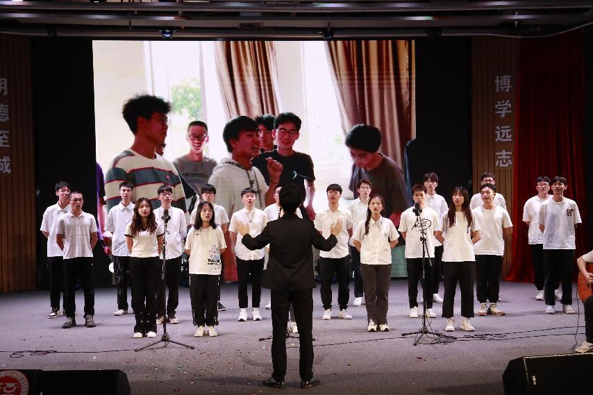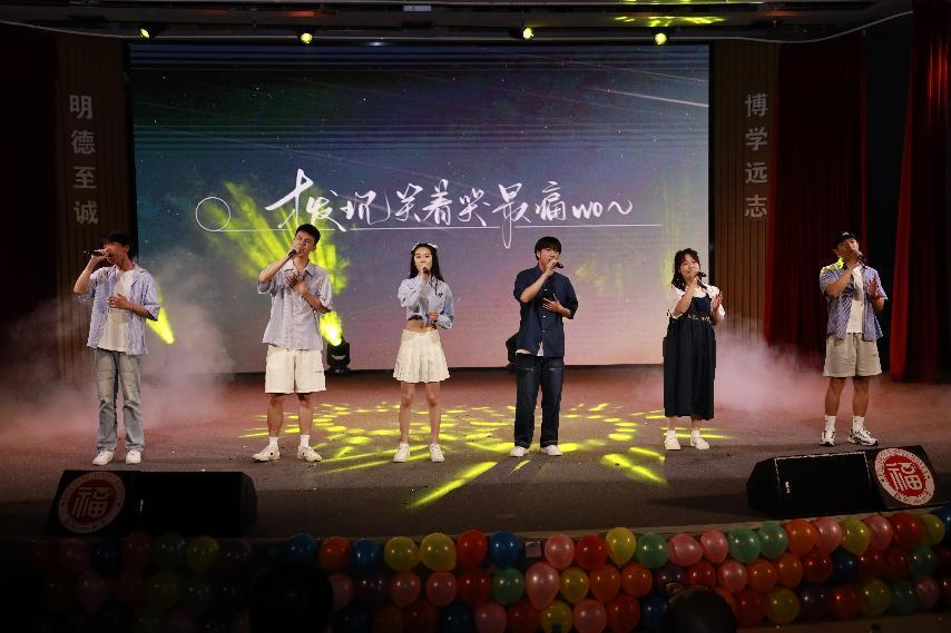 互动环节过后,下半场开始。电子科学与技术专业带来合唱《凤凰花开的路口》,伴随着视频和照片的播放,大学期间的点点滴滴跃然于眼前,引发了强烈共鸣。歌曲表演《Falling》唱出了对音乐梦想的坚持,给观众们带来了一份独特的悸动。舞蹈表演《Shooting Star》带来千禧少年的独特态度,打破刻板,别具一格。最后通过一曲师生合唱《陪你度过漫长岁月》,用歌声感谢彼此这四年来的温暖陪伴。