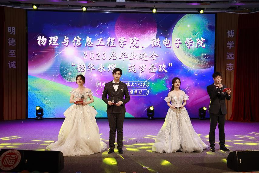 “韶华永熠,筑梦壹玖”2023届毕业晚会于图书馆博学厅精彩上演,出席本次毕业晚会的领导有物信学院党委魏金明书记、党委郑志刚副书记等学院领导以及各年级辅导员老师。