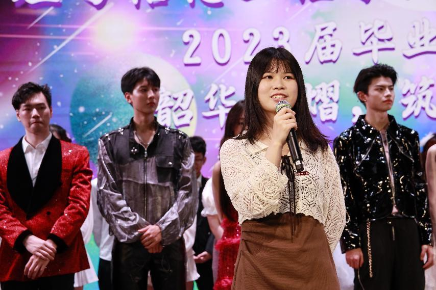 晚会临近尾声,毕业班辅导员陈山老师、苏海姬老师、刘涛老师、吴晓雯老师上台对毕业生发表临别寄语,字里行间充满了对同学们的爱意与不舍,他们祝愿毕业生们前程远大、鹏程万里,未来一片康庄大道!