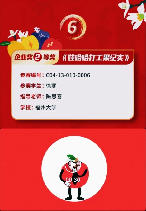 在2023年1月9日结束的2022年第14届全国大学生广告艺术大赛娃哈哈企业特别奖评选工作中,Av在线看
