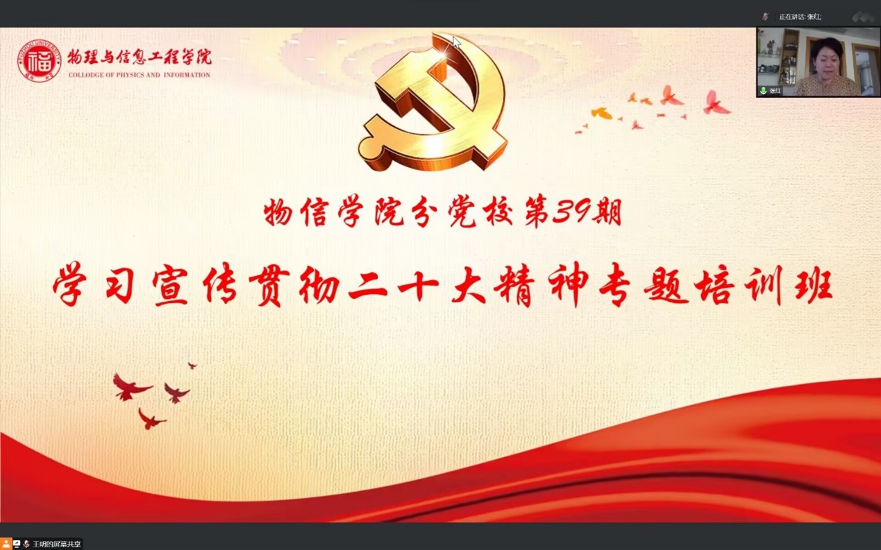 马克思主义学院詹志华教授作辅导报告。物信学院党委书记张红主持会议并讲话,学院党政领导干部、全体师生党员参加线上报告会。