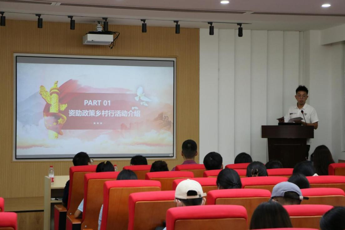 在仪式上,龚紫茵同学向现场的老师和同学介绍了今年暑期“三下乡”社会实践活动的动员和组织情况。随后,辅导员刘涛老师针对资助政策乡村行活动进行了介绍和动员,鼓励各实践队伍同步参与到今年的政策宣讲活动来。