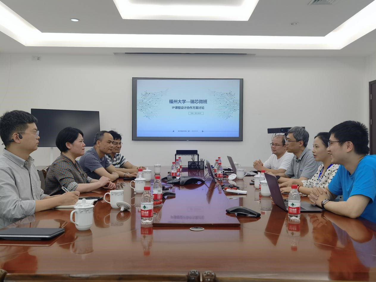 学院领导老师首先参观瑞芯微产品展厅,了解企业最新产品在各个领域中的运用。在座谈会上,校企双方就企业未来发展规划及学院人才培养计划等方面开展细致交流,对进一步推进“瑞芯微班”研究生培养方案计划、承办2022年全国大学生集成电路创新创业大赛华南赛区分区决赛等事项达成一致意见。