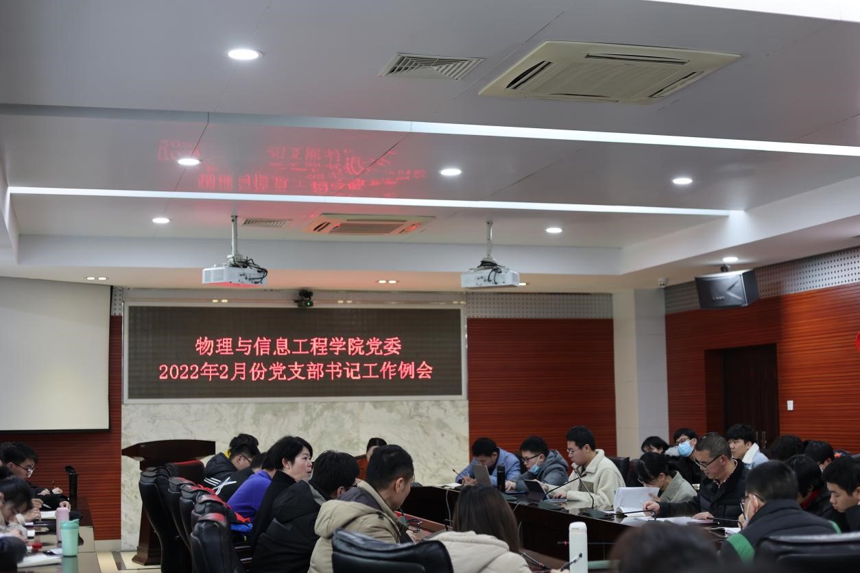 2022年2月24日下午,物信学院在祥联厅会议室召开新学期全院党支部书记工作会议,学院党委书记张红主持会议,学院全体师生党支部书记参加会议。