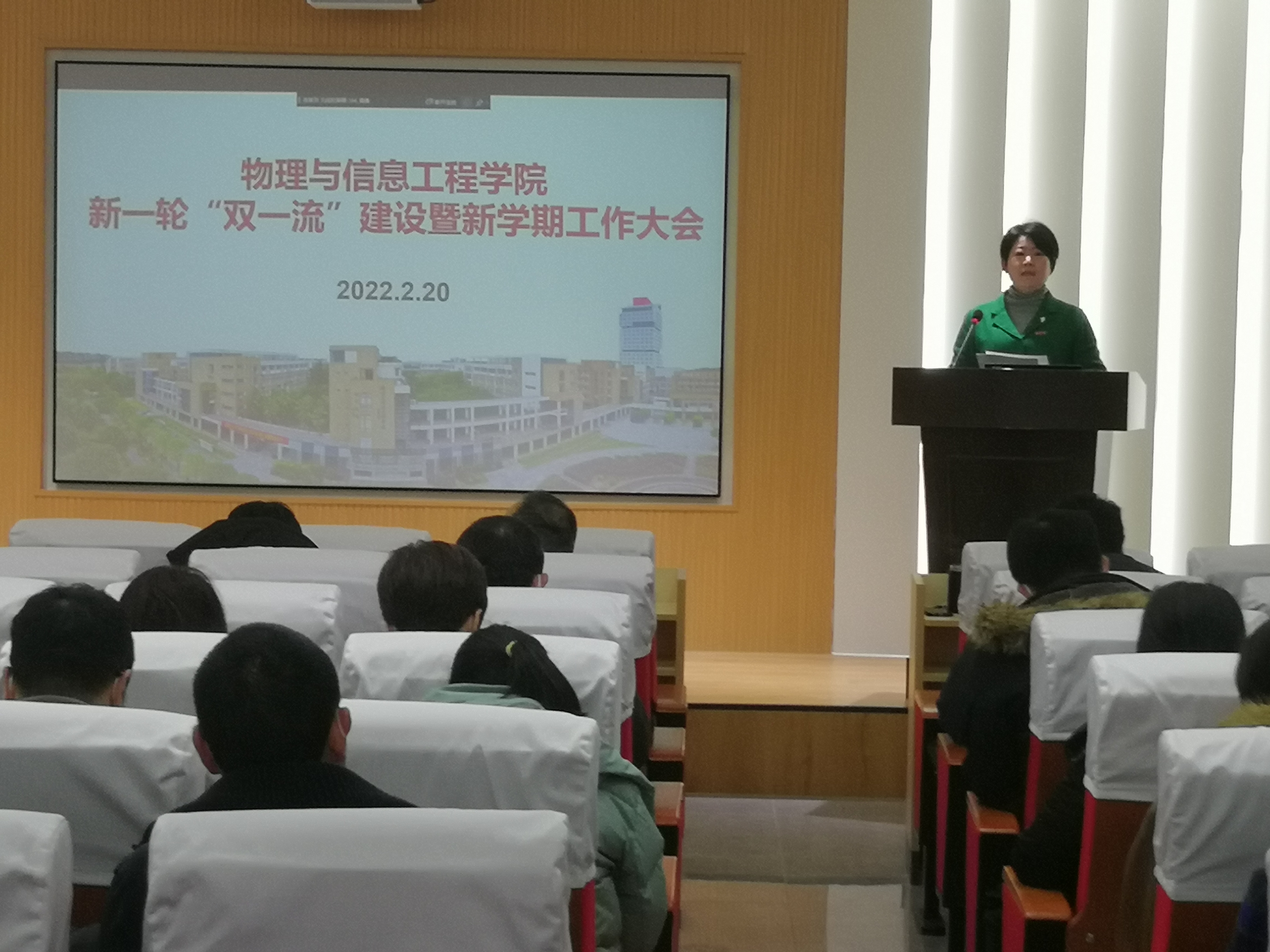 2022年2月20日上午,物信学院在111报告厅召开新一轮“双一流”建设暨新学期工作大会,学院全体教职工参加了会议,学院全体党政班子成员出席了会议。会议由张红书记主持。