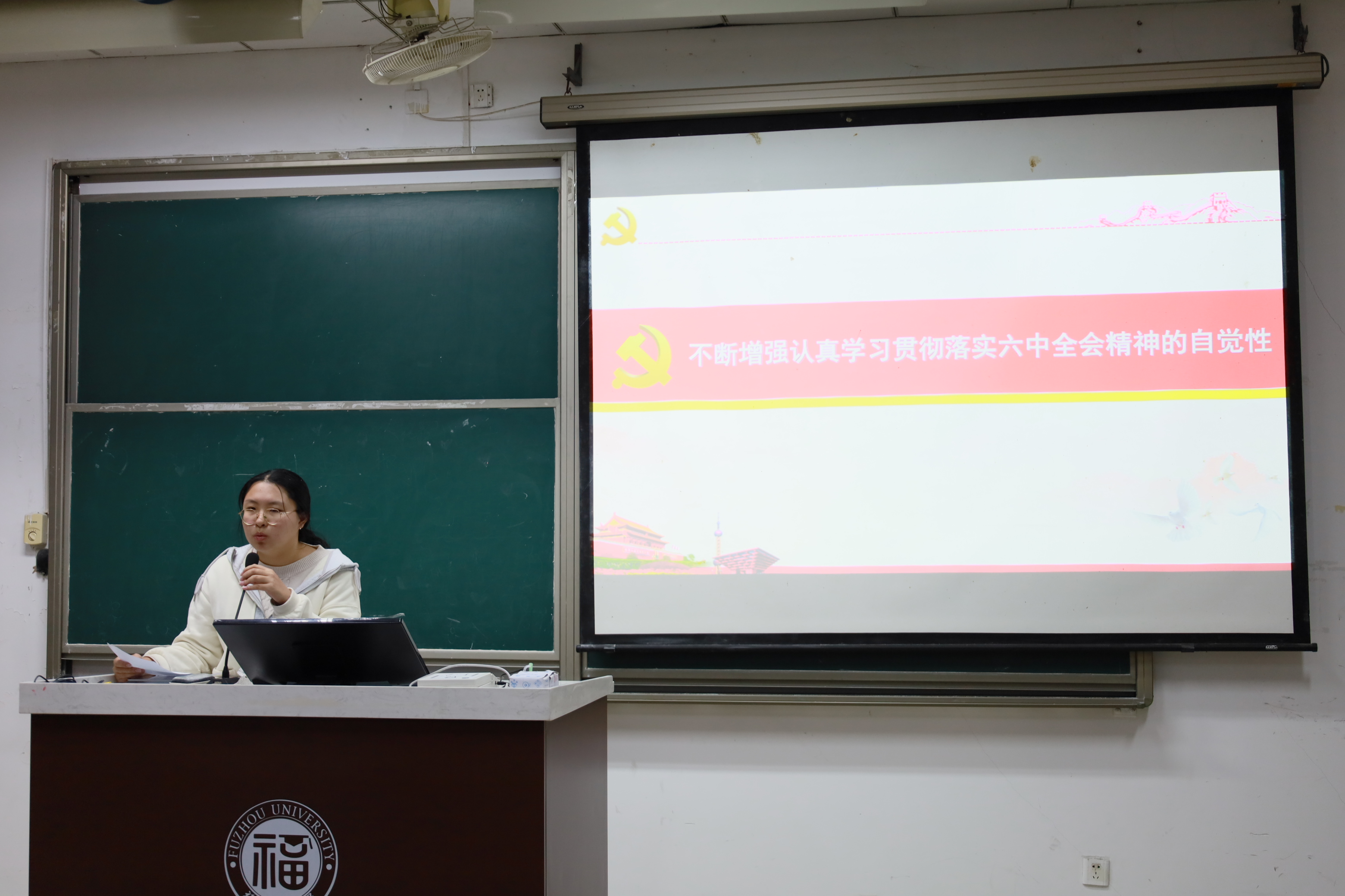 徐红梅老师结合学习、工作、生活实际,引导同学们更加深刻地了解十九届六中全会精神,解读其中更加深层次的含义,同时也希望学生干部能够作为领头羊,跳出羊栏,彰显物信学子良好的精神风貌。