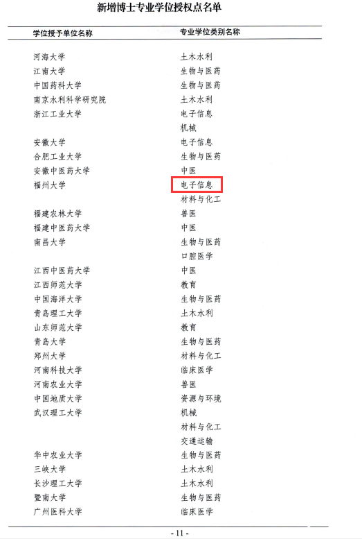 参予申报的“电子信息”专业学位博士授权点也成功获批!这是物理与信息工程学位点和学科建设的一个重大突破,新增博士学位授权点将为高层次人才培养提供更高层次平台,对服务福建省三大支柱产业之一的电子信息产业发展具有重要意义。