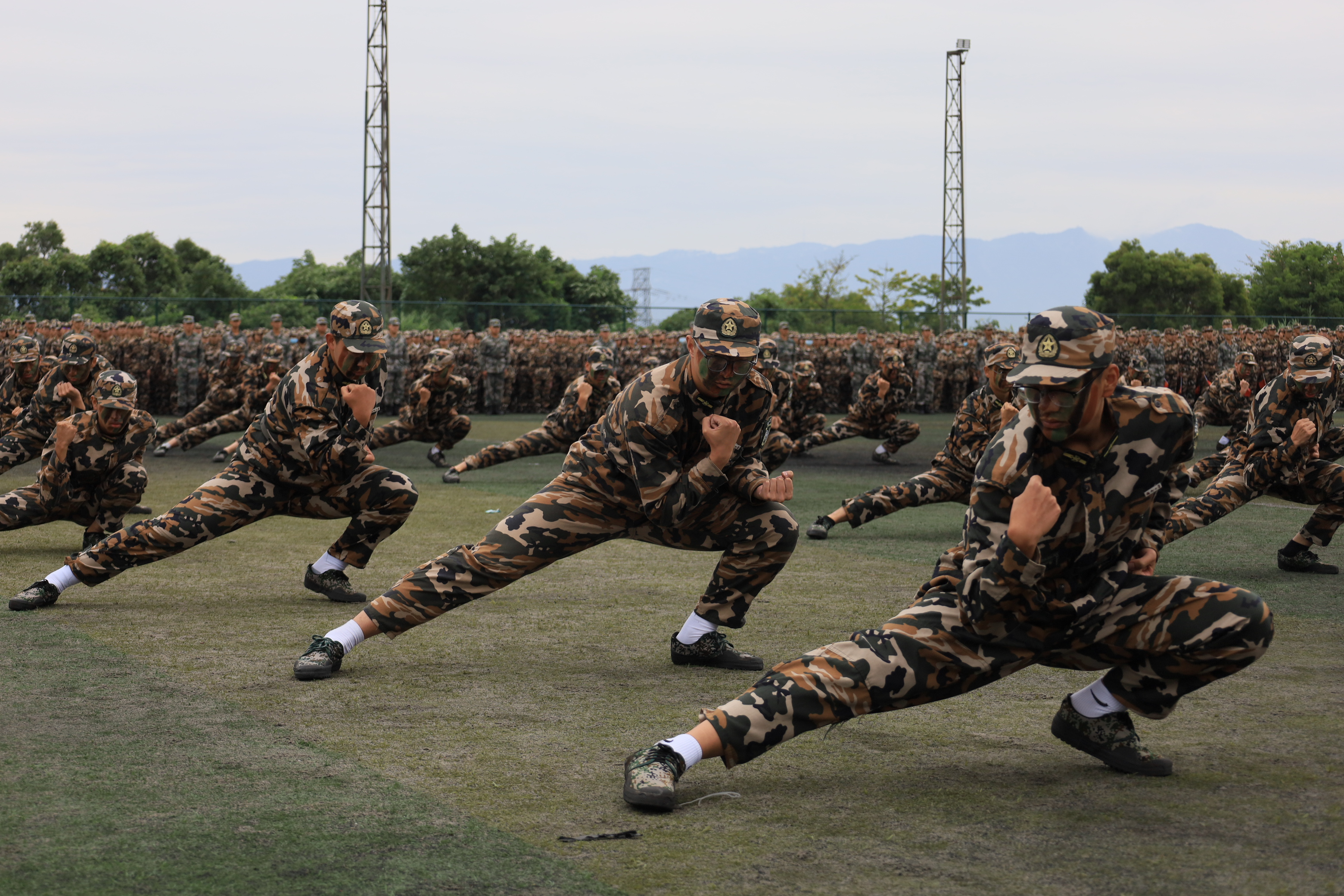 战伤救护比赛中,物信学子淋漓尽致表现了军人们的战场智慧;投弹场上,挥臂,投掷,少年们投出果敢,投出决心;战术训练场上,飞速匍匐前进,凸显速度与技能。紧接其后的汇报演出环节由Av在线看2021级电子信息类新生黄博文主持。物信新生所在的二中队带来的军体拳表演虎虎生风,拳打、脚踢、摔打、夺刀、夺枪一系列格斗动作行云流水,动作精练、节奏分明、刚劲有力,赢得了现场阵阵掌声。