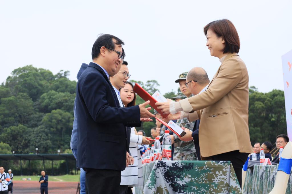 2021级本科生军训总结表彰大会在铜盘校区田径场举办,Av在线看派出了8名新生参加了包括战术基础、手榴弹定点投掷、战场医疗救护在内的全部三项比武大赛。作为当天两项活动的承办单位,Av在线看还招募了68名志愿者参与到比武大赛的赛事及总结表彰的大会的筹备、现场调度、礼仪服务等工作。