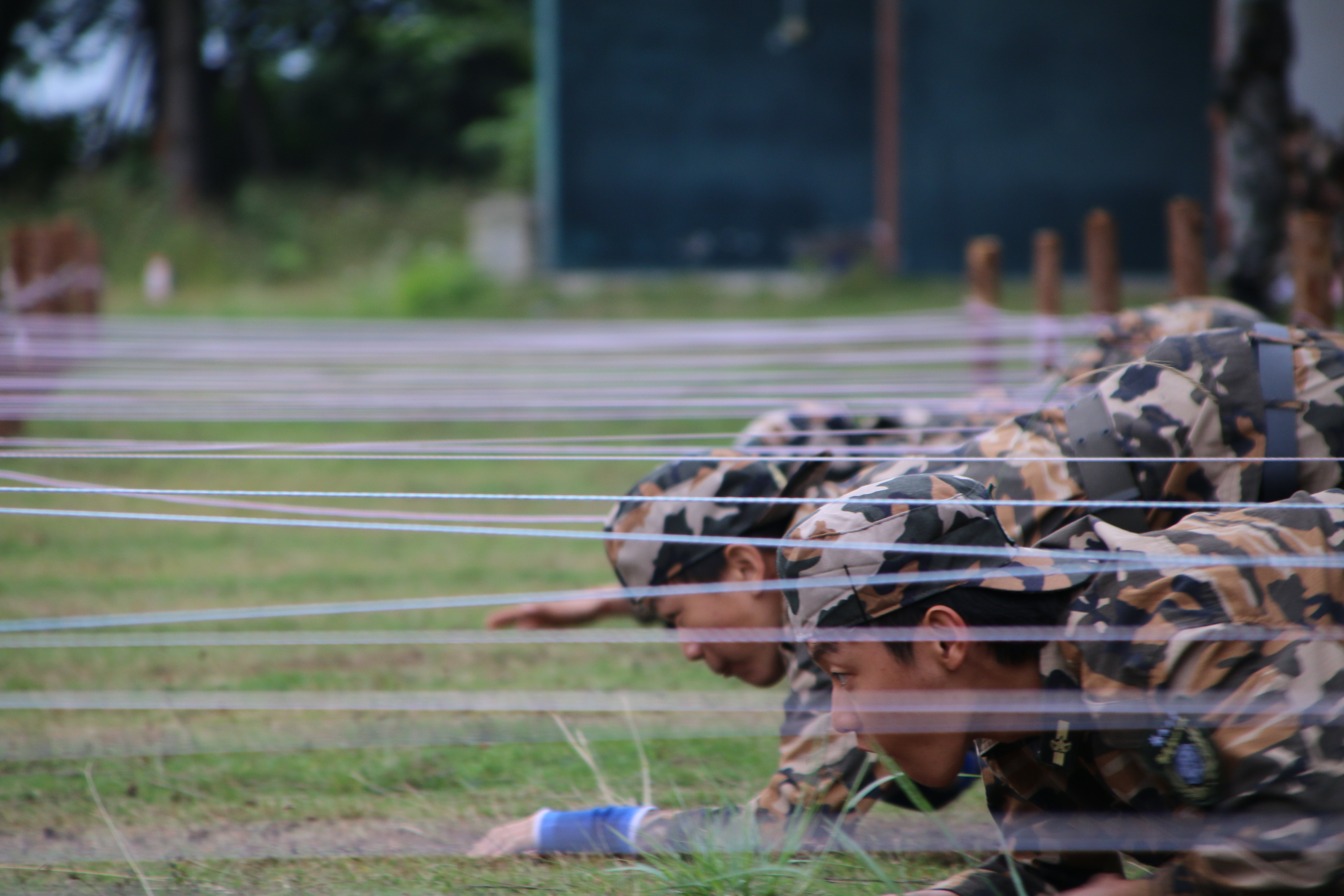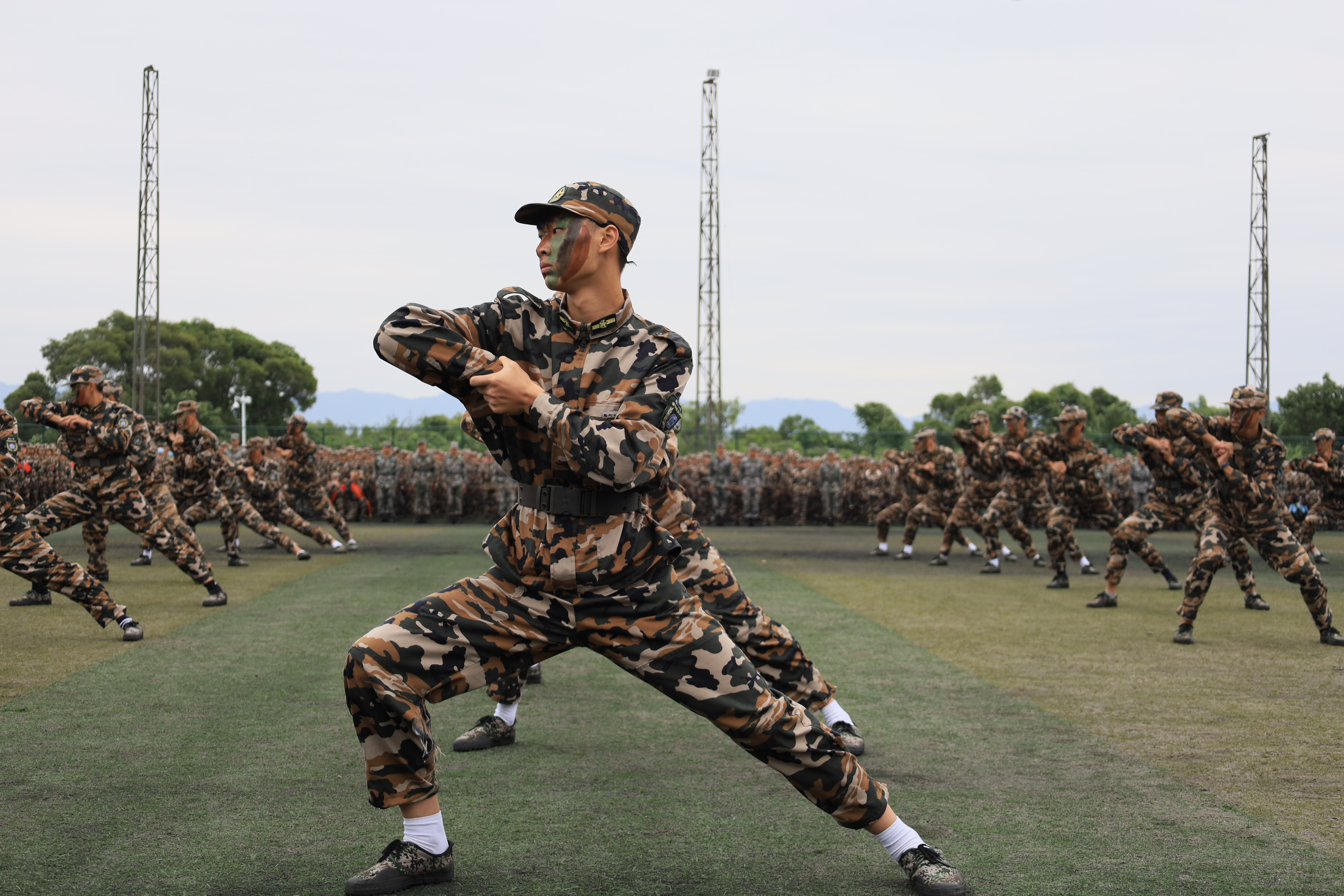 战伤救护比赛中,物信学子淋漓尽致表现了军人们的战场智慧;投弹场上,挥臂,投掷,少年们投出果敢,投出决心;战术训练场上,飞速匍匐前进,凸显速度与技能。紧接其后的汇报演出环节由Av在线看2021级电子信息类新生黄博文主持。物信新生所在的二中队带来的军体拳表演虎虎生风,拳打、脚踢、摔打、夺刀、夺枪一系列格斗动作行云流水,动作精练、节奏分明、刚劲有力,赢得了现场阵阵掌声。
