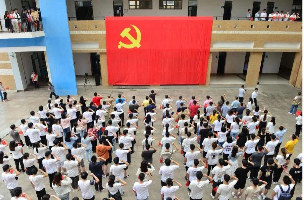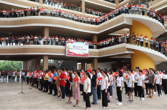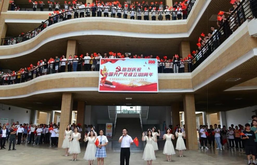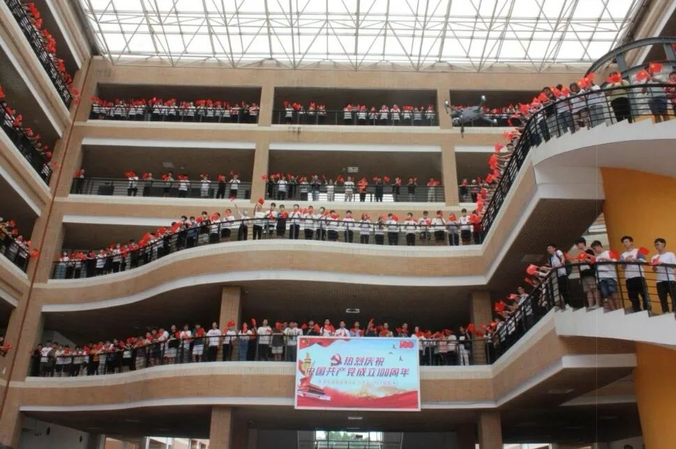 旗山校区东二东三公共教学楼举办,1000多名福大师生以“快闪”的活动方式献礼建党百年。