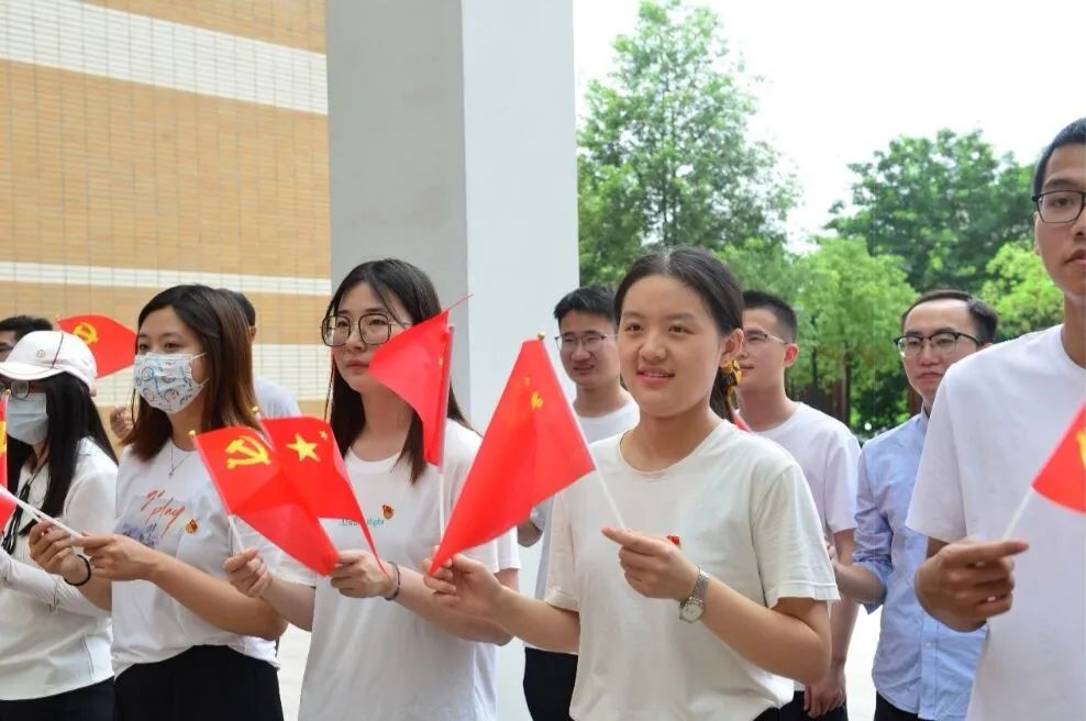 党委张红书记带领现场的新党员面向党旗宣誓,在场的其他师生党员也一同重温入党宣誓,增强了党员们的荣誉感、归属感和使命感。