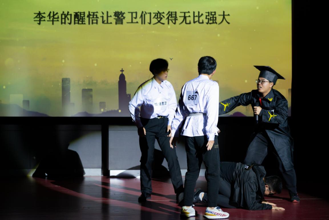 物信学院的情景剧名为《青年焦虑奇遇》,由罗奕帆老师指导,集齐了学院优秀的表演人才,以富有新意和创造力的表演讲述主角李华如何战胜考前过度焦虑所带来的一系列问题。《青年焦虑奇遇》借鉴了动漫《头脑特工队》的表现形式,将虚拟和现实相互夹杂,将主角李华因焦虑产生的情绪具象化为情绪中心的情绪小人,情绪世界中情绪的各类表现与现实世界主角的反应相互映射。本剧旨在为同学们普及考前焦虑的原因症状以及处理方式,同时也想告诉同学们情绪并无好坏之分,焦虑也并不可怕,只要处理得当,焦虑可以化为前进的动力。物信学院同学们的投入表演以及新颖的表演形式、正确且富有深意的情绪处理方式同样也收获了评委老师的高度赞扬。