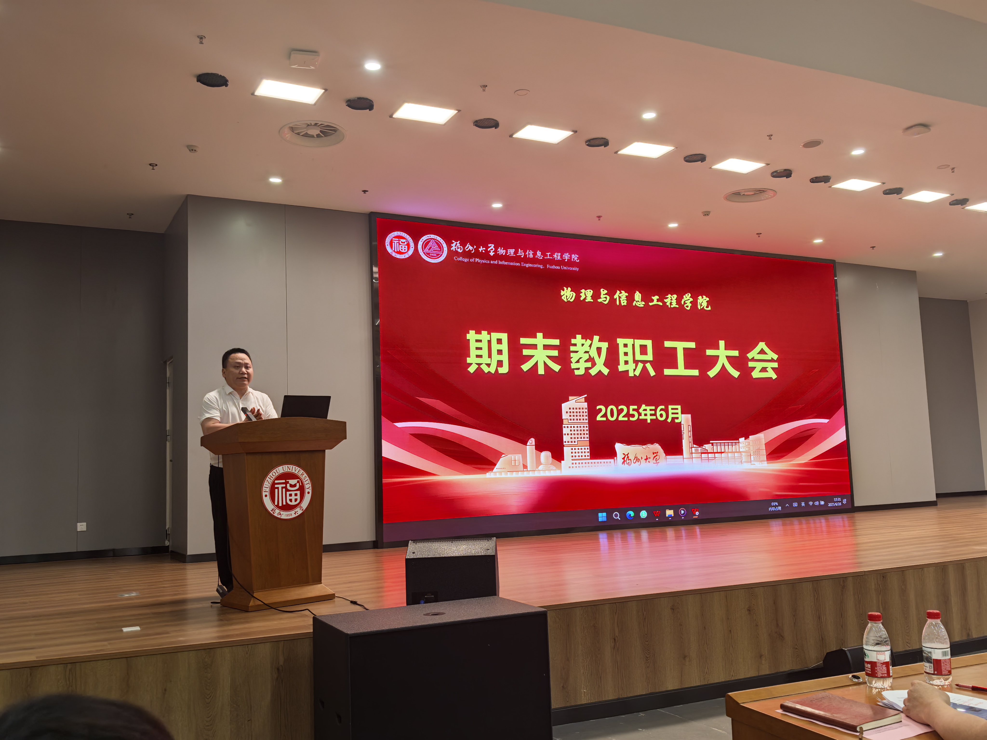 6月26日下午,物信学院在旗山校区晋江楼一楼报告厅召开2024-2025学年春季学期末教职工大会,全体教职工参加了会议。学院党委书记魏金明主持会议。