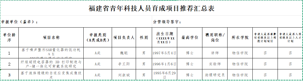 根据《关于申报福建省青年科技人员育成项目的通知》等文件要求,按照公开、公平、公正的原则,经教师本人申请、学院教授委员会评分推荐,现将Av在线看 2025年度“福建省青年科技人员育成项目”推荐人选及排序情况予以公示:
