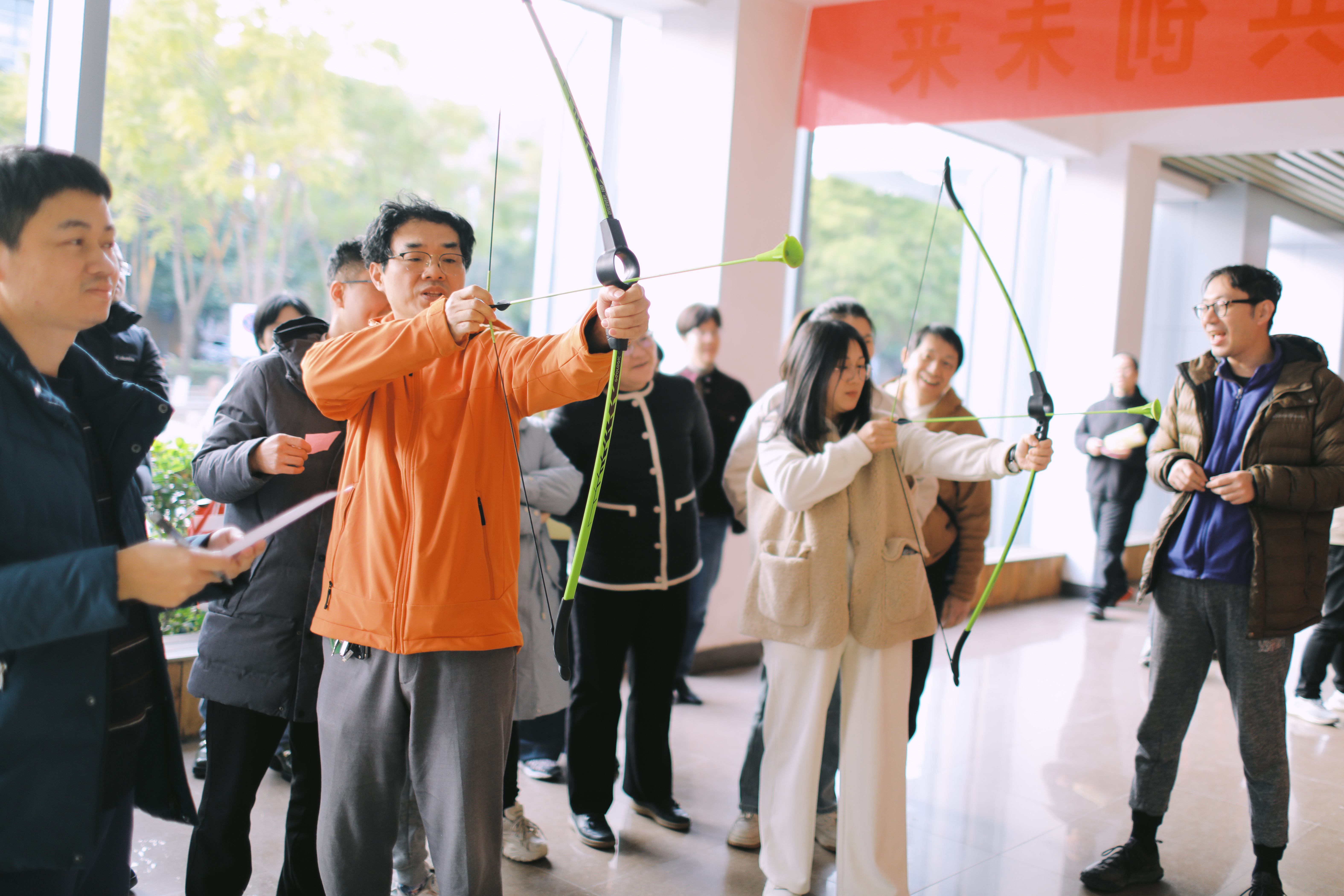 本次活动设置了户外沙包投掷、射箭、跳绳、投壶等四个项目,内容丰富、形式多样、趣味横生;每个游戏项目均采取竞赛得分排名的形式开展,最终以排名高低兑换相应的活动纪念品,教职工们积极参与,热情高涨。在游戏过程中,大家不仅享受到了游戏的乐趣,更在欢声笑语中增进了彼此之间的友谊。