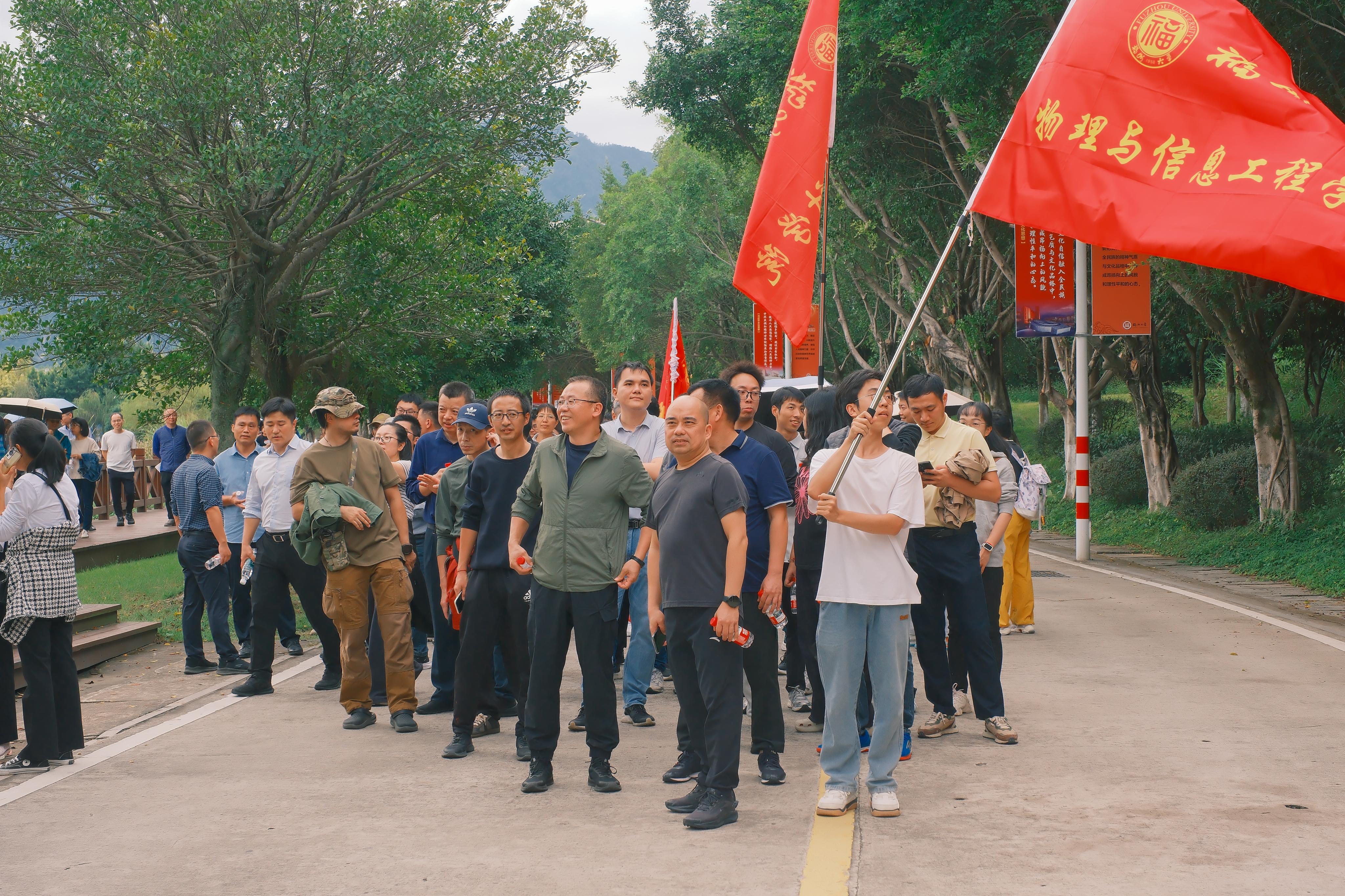 14:00,物信学院代表队准时在第一田径场集合,参加了简短的开幕式。随后,健步走活动正式开始,在学院党委魏金明书记的带领下,老师们沿着预定路线完成了全程活动。行进途中,大家精神抖擞,步伐矫健,在欣赏校园秋日美景的同时,也体验了运动的快乐。