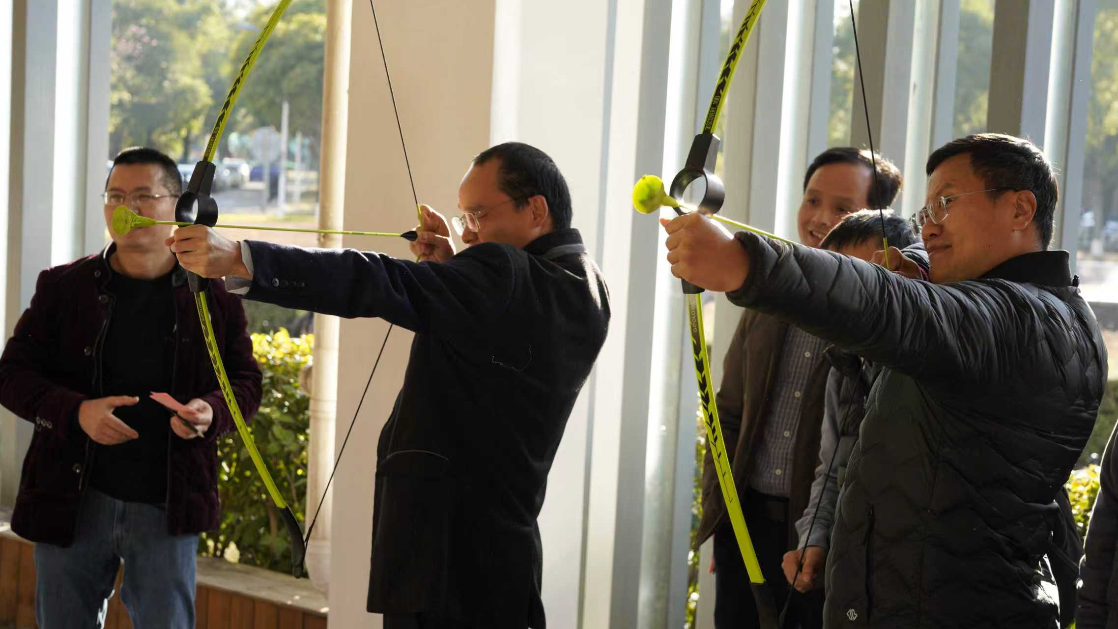 活动现场,平日伏案钻研的教职工们化身“运动达人”:投掷沙包时紧盯靶盘的专注、叠杯接力时的默契击掌、夹乒乓球时的屏息凝神、射箭拉弦时的从容自信,构成了一幅幅生动的协作图景。参与教师纷纷表示,活动不仅放松了身心,更在轻松氛围中加深了对同事的了解,使得活动既有趣又有意义!