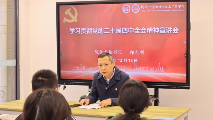 为深入学习贯彻党的二十届四中全会精神,引导学生党员将个人成长融入国家发展大局,12月15日下午,物信学院党委郑志刚副书记在生活二区16#共享活动空间为所联系的学生党支部党员宣讲党的二十届四中全会精神。 宣讲中,郑志刚副书记系统解读了党的二十届四中全会的核心精神,他...