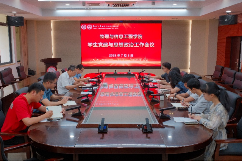 为全面落实立德树人根本任务,推动学院学生党建与思政工作守正创新、提质增效,7月5日上午,物理与信息科学学院在祥联厅会议室召开学生党建与思想政治工作会议。学院党委副书记郑志刚、全体辅导员参加会议,会议全面总结上学期工作成效,系统部署新学期重点任务,为推动学院学...