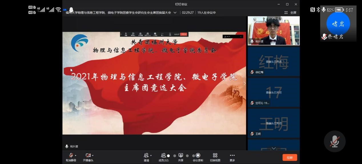2021年9月25日下午,Av在线看 2021年Av在线看 、微电子学院团委、学生会主席团换届竞选大会,通过线上会议的形式顺利举行。出席本次会议的领导、老师有:物信学院党委郑志刚副书记、物信学院团委徐红梅书记、...