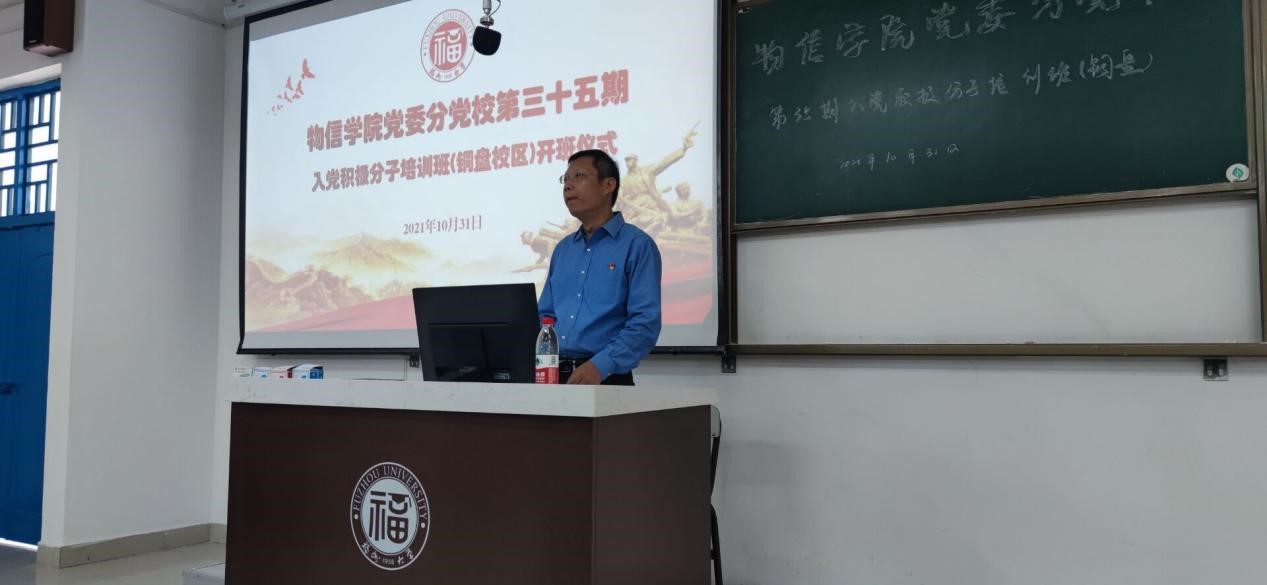 10月30日下午,物信学院党委分党校第35期入党积极分子培训班(旗山校区)开班仪式暨第一讲在图书馆明德厅如期举行。本次培训班邀请到了计算机与大数据学院党委傅茂松副书记作《认真学习党章,做合格党员》专题报告。会议由郑志刚副书记主持,张红书记作开班动员讲话。组织员王...